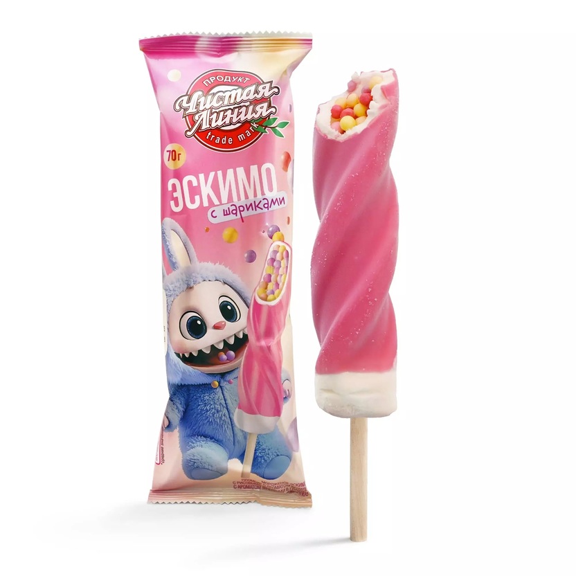 Эскимо Спиролло пломбир ванильный с рисовыми шариками в малиновой глазури 70г, Чистая Линия