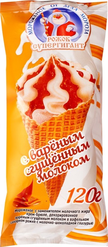 Мороженое Рожок От Деда Мороза крем-брюле с вареной сгущенкой 120г, Айсберри